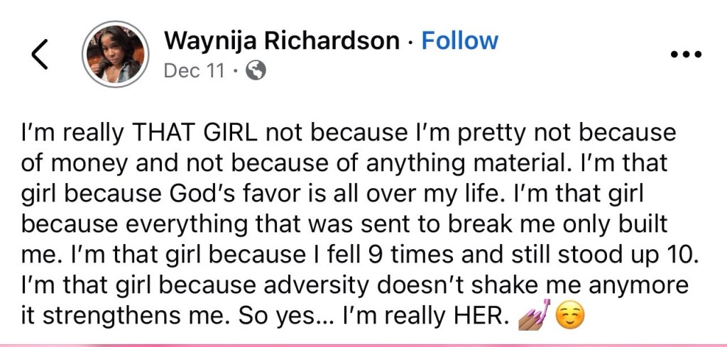I began to think about 2025 and how hard it has been. In January, one of my cousins unexpectedly passed away. Death is something we can’t avoid, and we know it is coming to us all. When it comes, it hurts. She and I weren’t close at all growing up. Truthfully, I might have only seen her a few times in my younger days. I’m very thankful that God allowed our paths to connect as adults. We would talk on the phone for hours and laugh. Even when I mover to Florida, we’d check on to see how each other and our children were doing. Her death took a toll on me mentally.